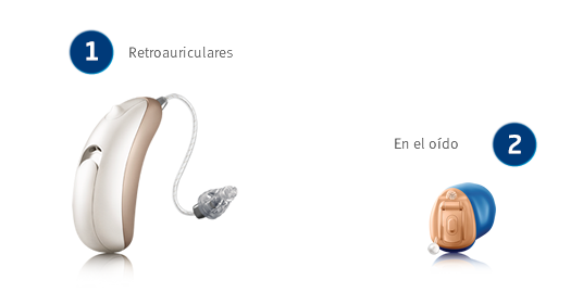 Dentro del oído: Diferentes tamaños que van desde el más pequeño que se adapta completamente dentro del canal auditivo, al más grande que se ubica en el oído.