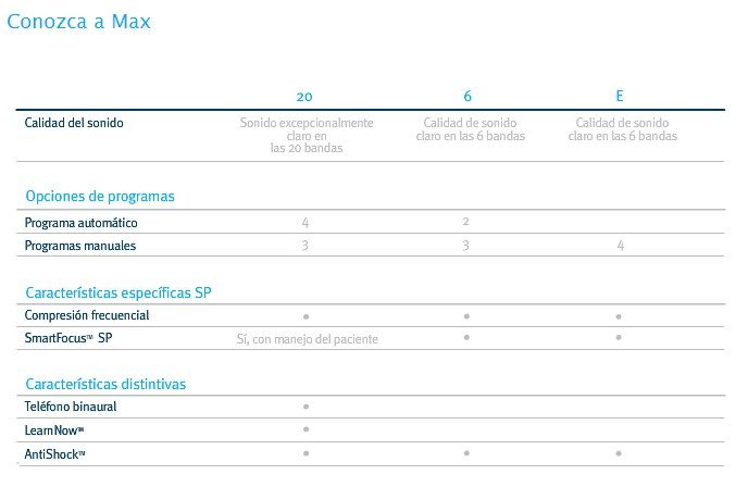 Max ofrece funciones de alto desempeño, tanto en un audífono BTE Super potente con pila 675, como en un BTE Super potente mini con pila 13. Los dos estilos se desarrollan con el poder de ser resistentes al agua, la corrosión o elementos externos.